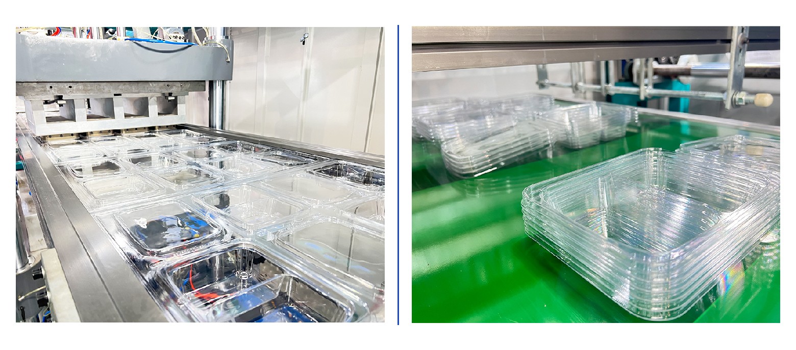 7.成型、裁切單元、開模、合模伺服電機控制,制品自動計數輸出。